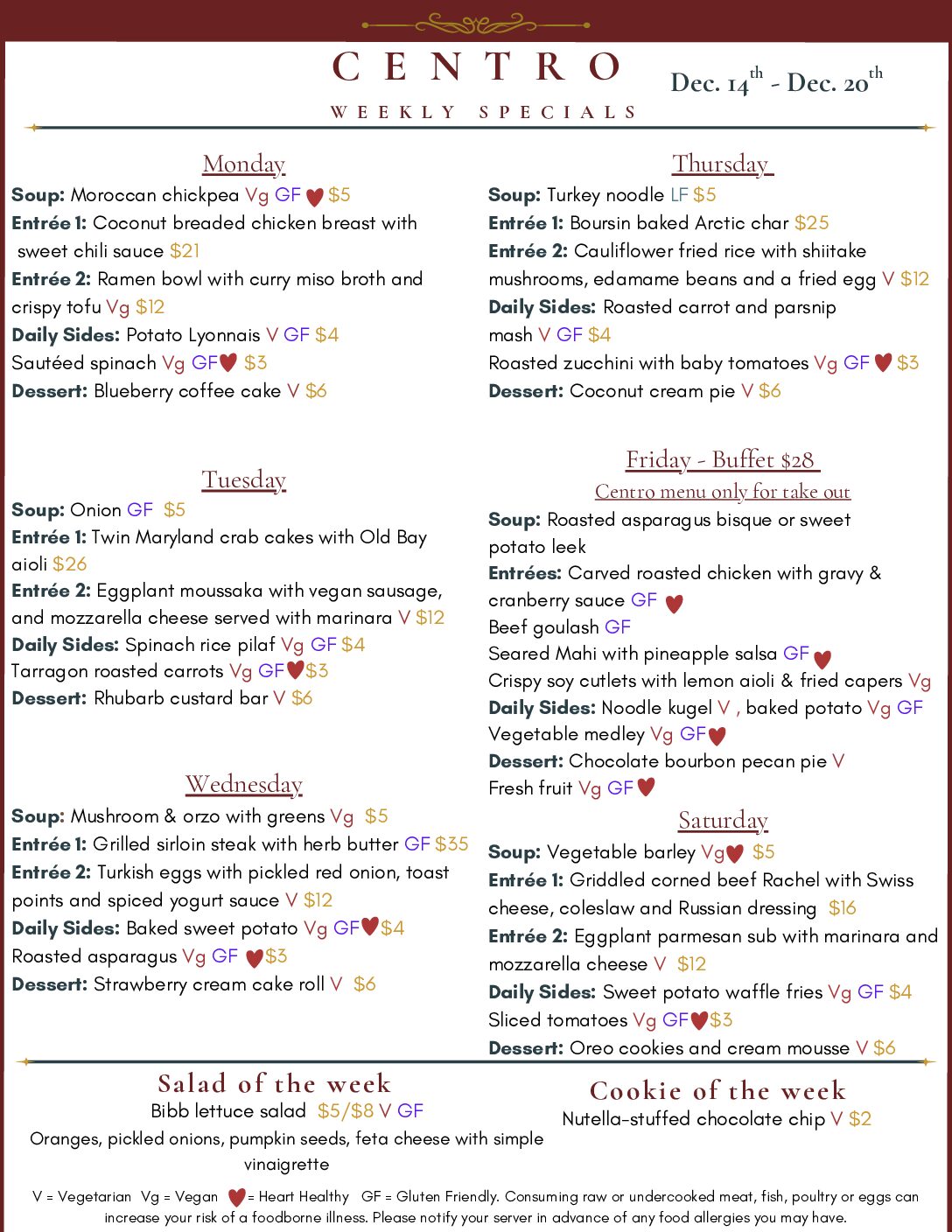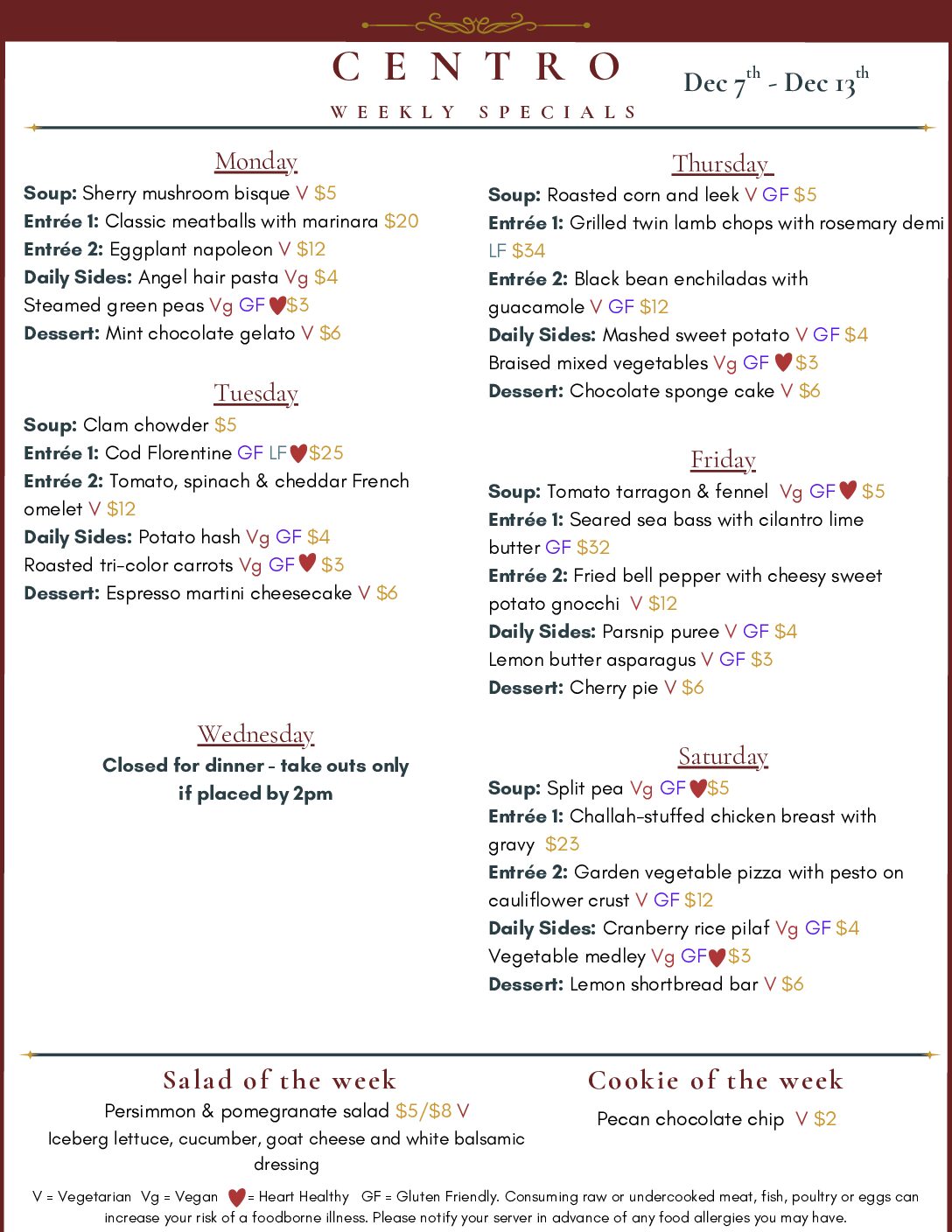 Centro Dinner Specials