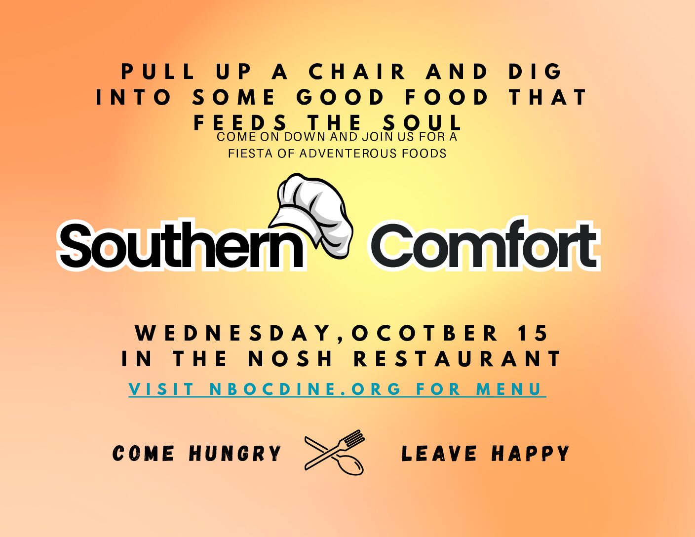 ![]() Joins us for a southern cooking inspired buffet. Click here for access to weekly menu once posted |